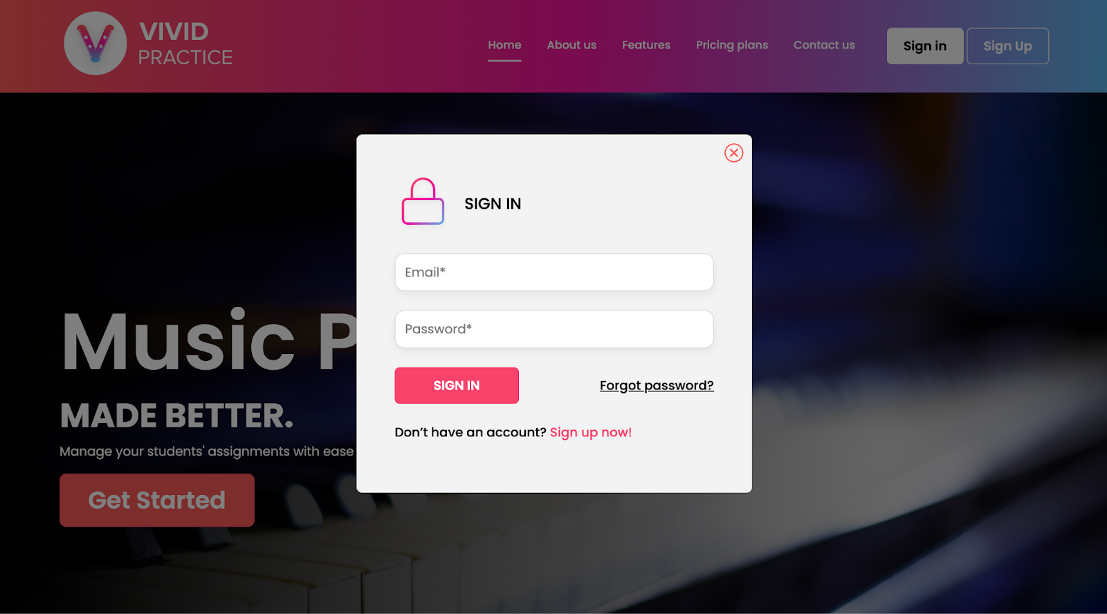 Don’t forget that teachers can only log into the website, not the app. Go to vividpractice.com and select “Sign In” in the top-right corner. Remember to enter the full email address you used when you created the account.