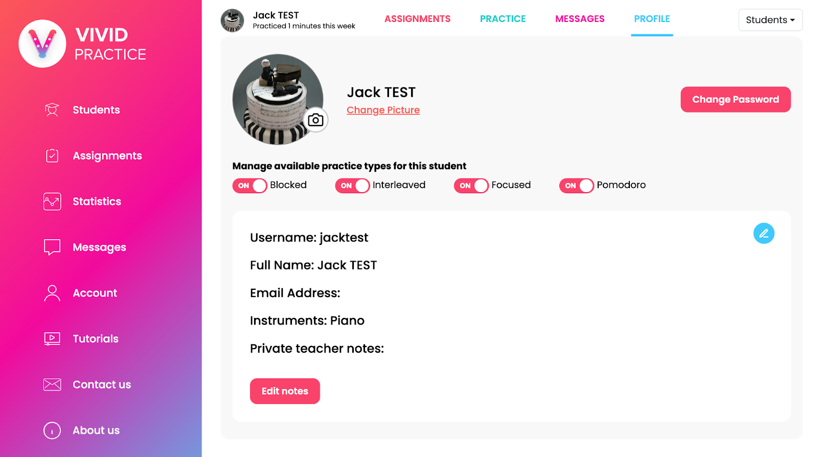 If you want your students to be able to reset their passwords without contacting you, enter an email address in their profile tab.