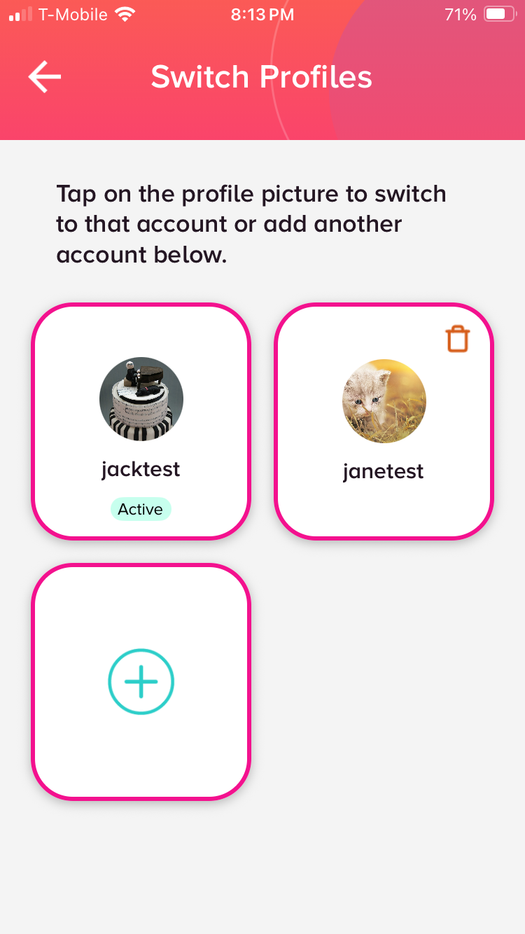 Note: To delete a profile from this list, make sure you are “active” in another profile first. Then come back to this list and you’ll see a trash can icon on inactive profiles.