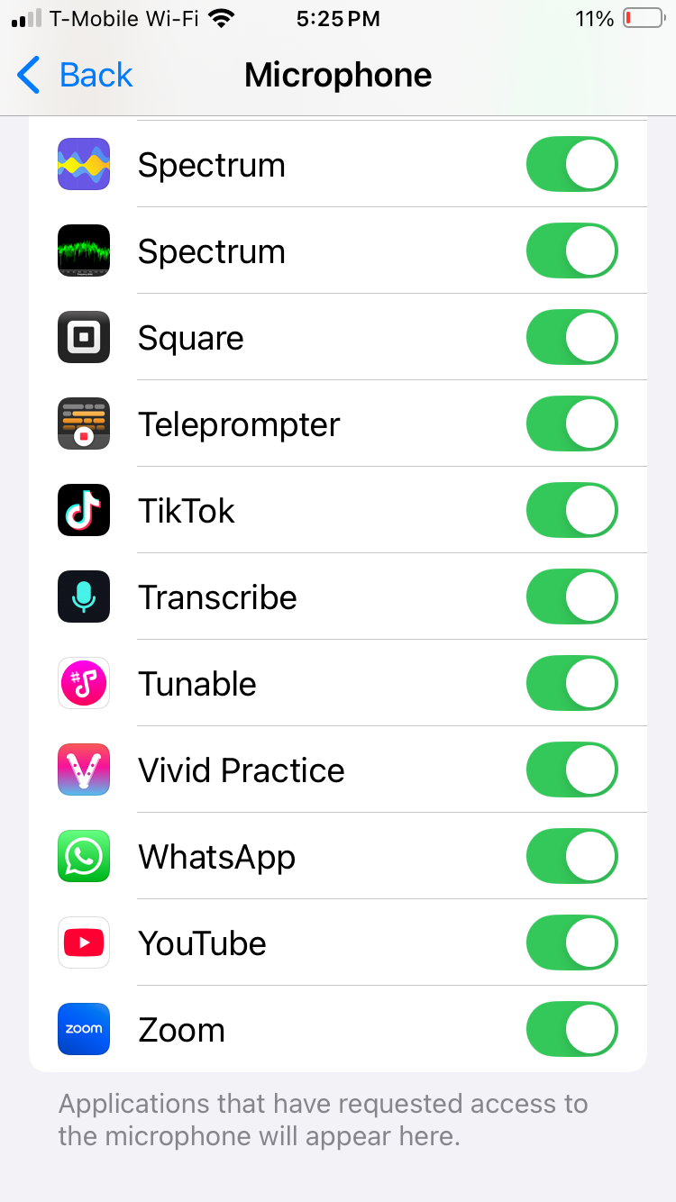 If this was accidentally denied, you will need to go to your devices main privacy and security settings, click on the camera and microphone, and then toggle on permission for Vivid Practice.
